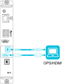 4 | USB Type-B | OPS/HDMI input (touch) | See Connecting cables for room computers, guest laptops and other input sources and USB cables and connectors. |
