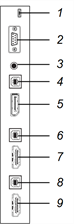 3 | Salida HDMI | Monitor externo | Este conector es HDMI con cifrado HDCP. Consulte Cables HDMI y conectores para obtener más información. |