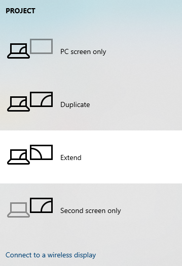 If a computer’s input is currently selected and the computer’s desktop is extended across multiple screens, select a different screen mode. If the mode is currently set to duplicate, change it to extended. If the mode is currently set to extended, change it to duplicate.
