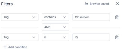 in the Search bar.Create the conditions for the filter. Click Add Condition to add multiple conditions as needed.