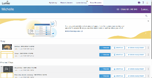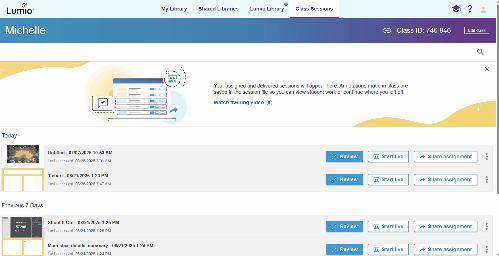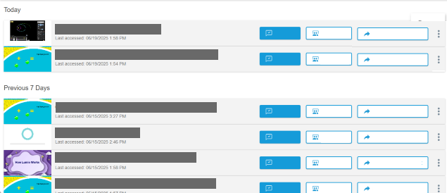 Sessions | The Class Sessions tab is where you’ll find a list of all the sessions you've delivered or assigned. At the top, you’ll find your most recently accessed sessions, followed by the complete list of sessions as you scroll down. ![]() |