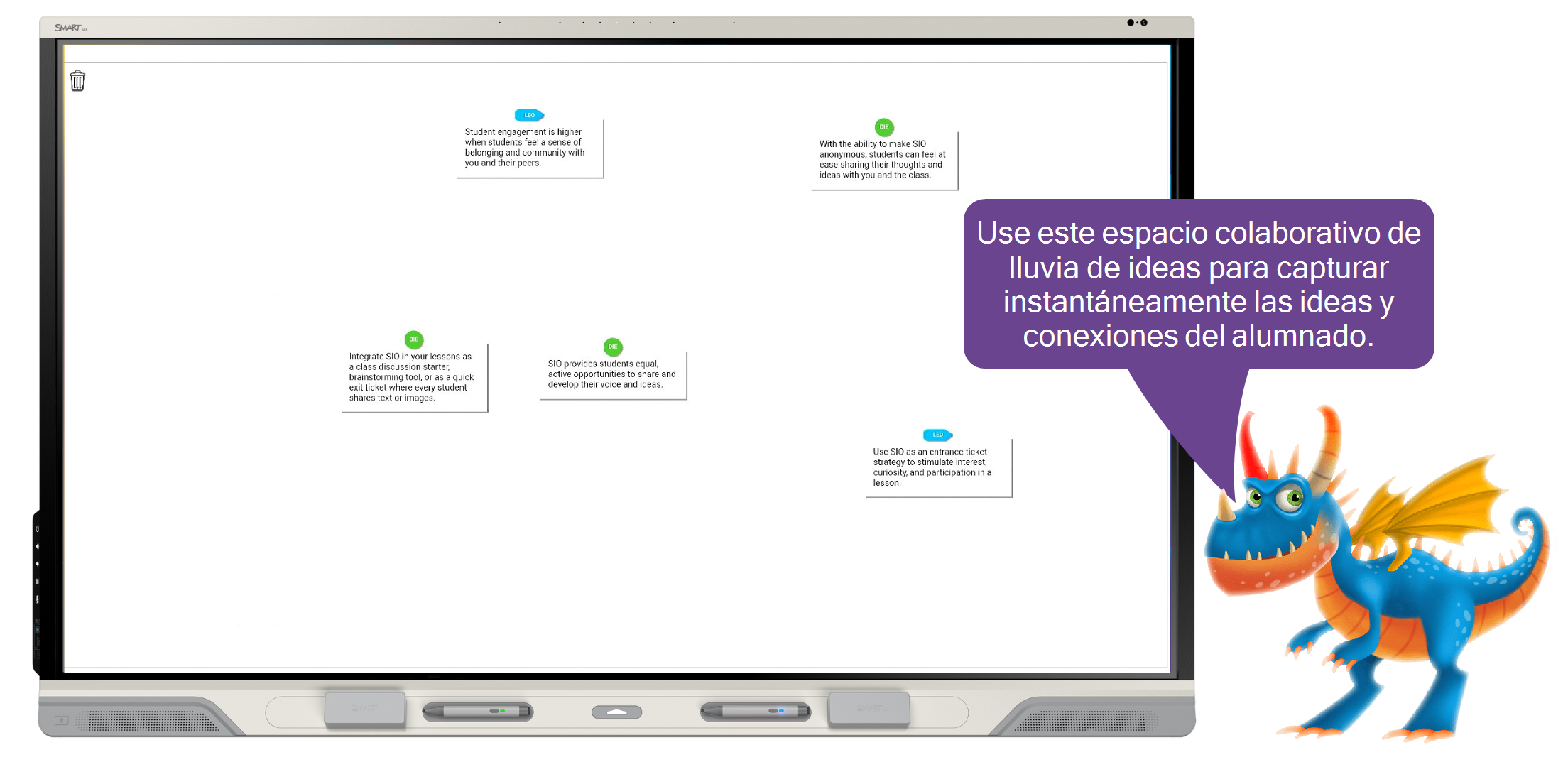 Aproveche la pizarra blanca de SMART como un área de colaboración del alumnado para fomentar la lluvia de ideas y el debate.