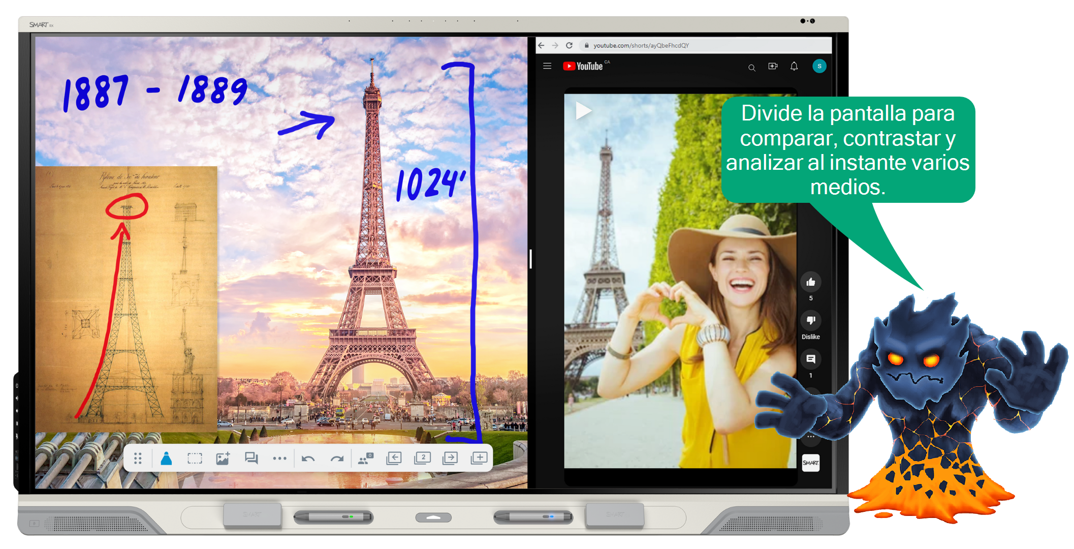 Mejore sus clases combinando multimedia en la pizarra blanca con otras aplicaciones en la pantalla.