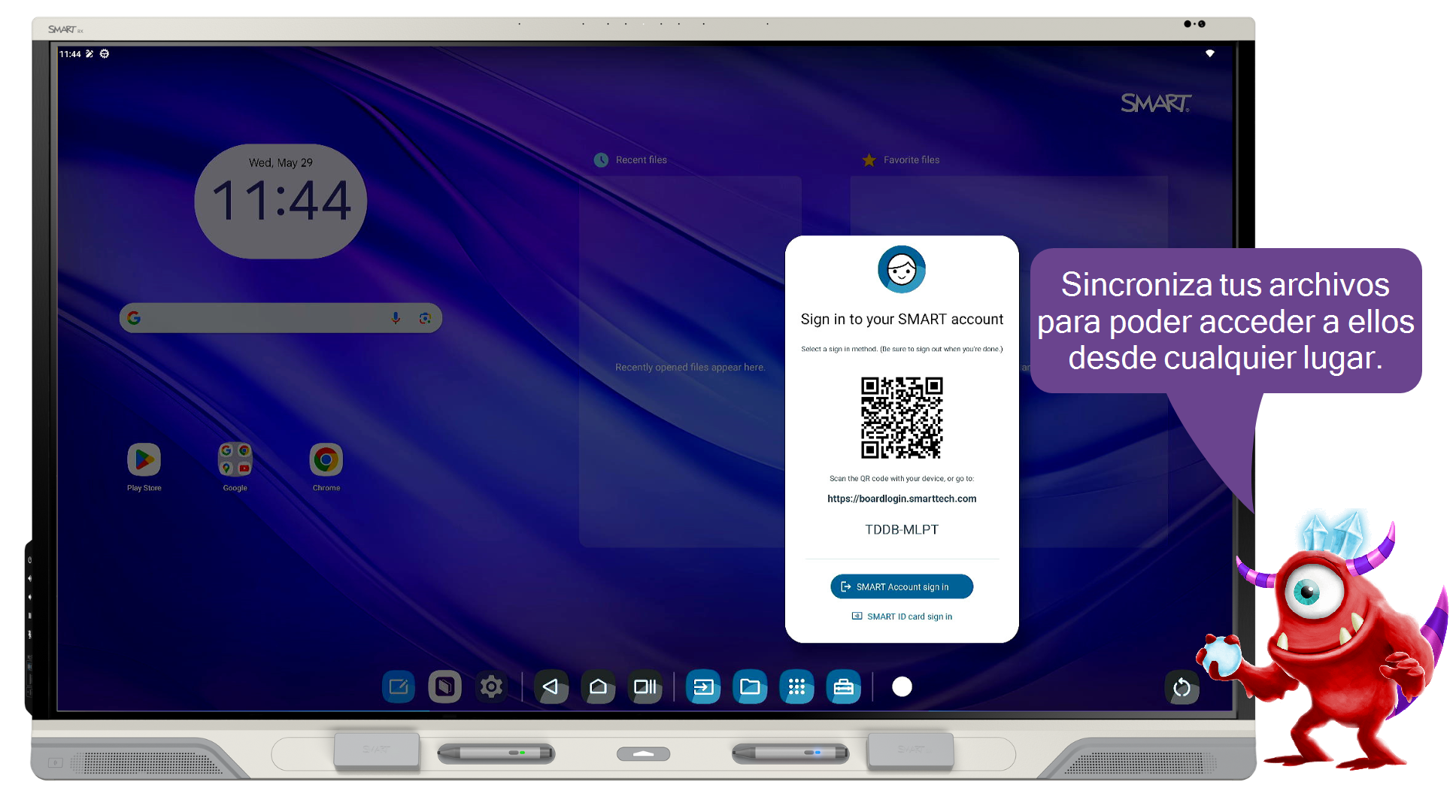 | 2 | Sincronice su Google Drive Si su cuenta SMART está asociada con su cuenta de Google , puede sincronizar con su Google Drive y acceder a los archivos de sus clases desde allí. Pulse Biblioteca de archivos |