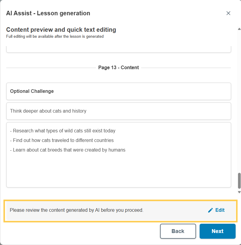 Generate. Lumio generates a preview of your lesson.Click Edit to make any initial changes to the content in the preview window.