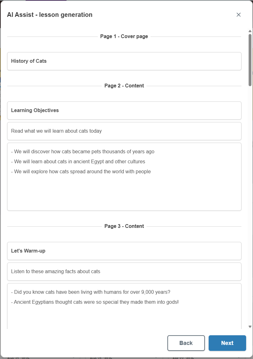 Save time by generating lessons with Lumio’s AI lesson feature. You can generate a complete, editable lesson with interactive activities just from your prompt.