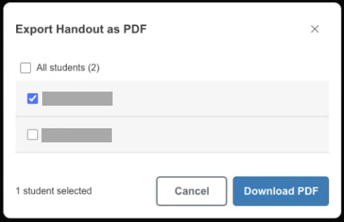 Export Handout as PDF: Teachers can now select which student handouts they want to export.