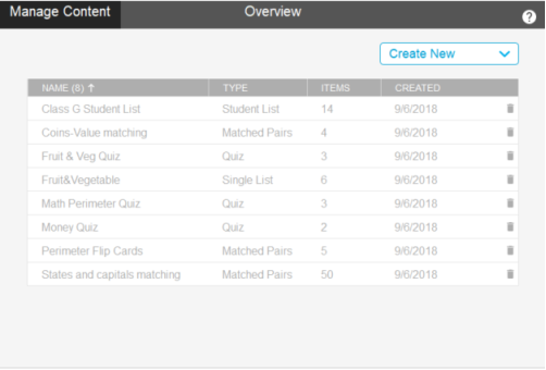 Use the content manager to save question sets, lists, matching activities, class lists, and more so you can reuse them in other lessons.