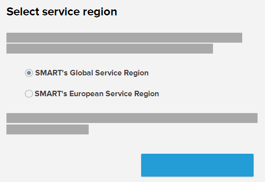 Follow the instructions below for the products you use. The service region must match for all SMART software you use. Additionally, if you are part of a school or organization where subscriptions are managed by an administrator in the SMART Admin Portal, the service region chosen by teachers must match the one set in the SMART Admin Portal.