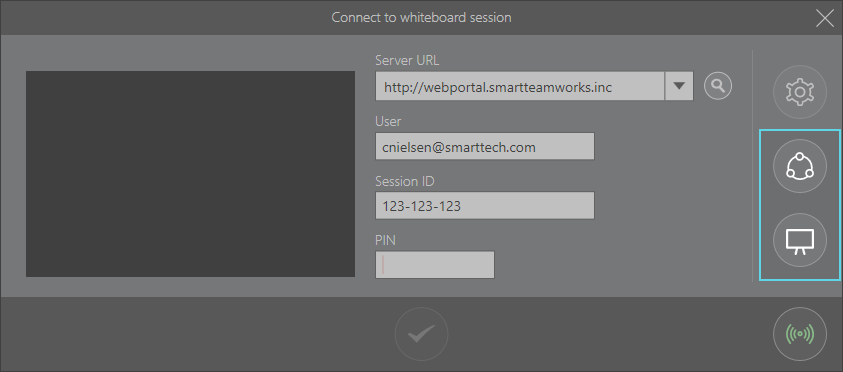 If your organization has created a user account for you in the SMART TeamWorks Server web portal, you can host a whiteboard session from the Contributor app. You can start a whiteboard session from your device and other remote participants can connect to it. You don't need a physical meeting room that has SMART TeamWorks installed.